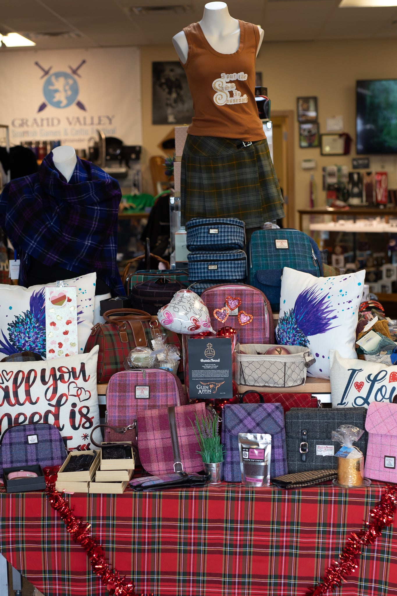 Since moving to this country, it's been a dream of Sharon's (our owner, pictured), to open her own shop and bring a wee bit of Scotland to the valley. Everyone should get to enjoy the delights of the U.K. That's why we have our very own storefront - bringing you food, drinks, frozen meats, candies, clothes, kilts, bagpipes, trinkets, games, jewelry, purses/wallets, flags, art, books, shoes, you name it!