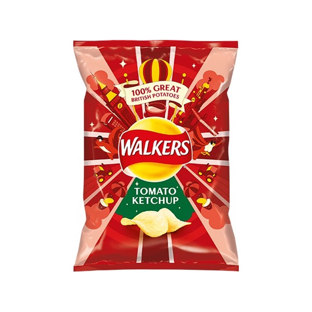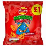 Original Walkers Flavored Chips available in Roast Chicken, Cheese and Onion and Beef and Onion, Pickled Onion, Smokey Bacon, varieties, Squares Salt and Vinegar, Fish and Chips, Quavers, Monster Munch Roast Beef, Prawn Cocktail, Christmas Pudding (Limited Time),